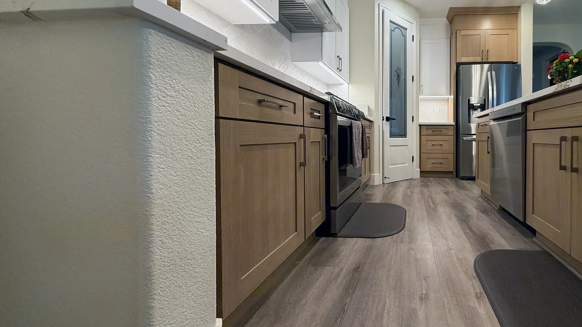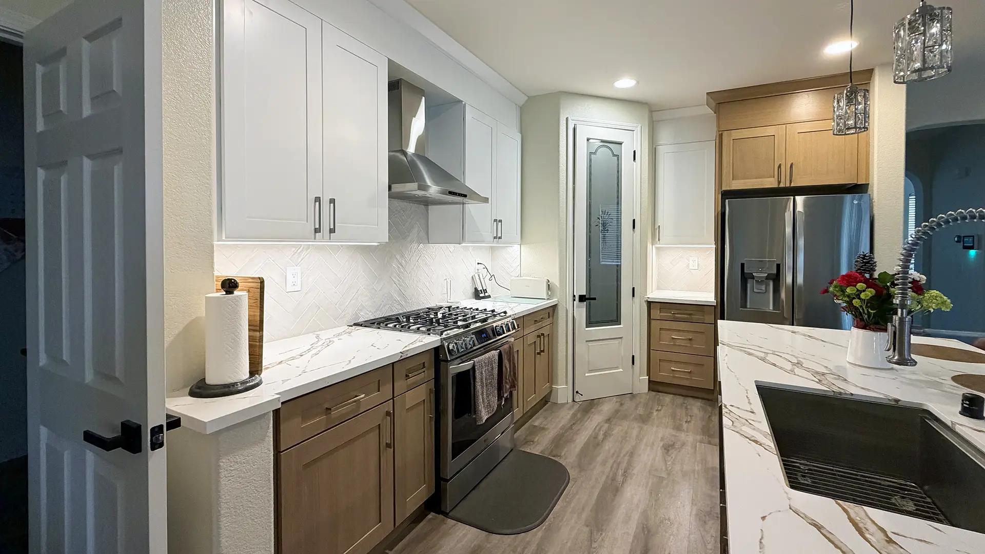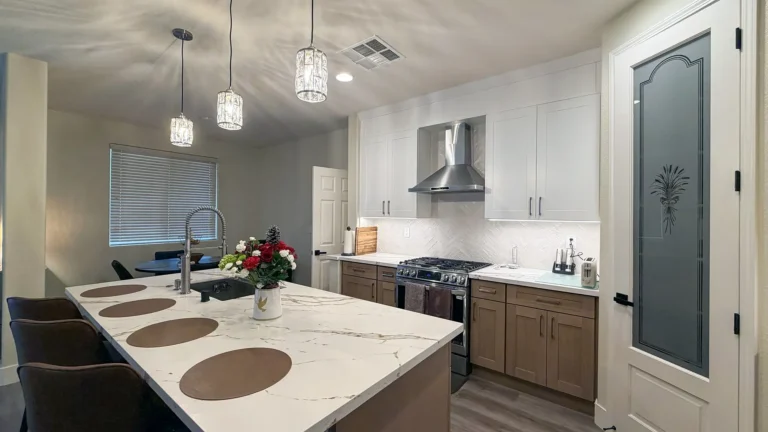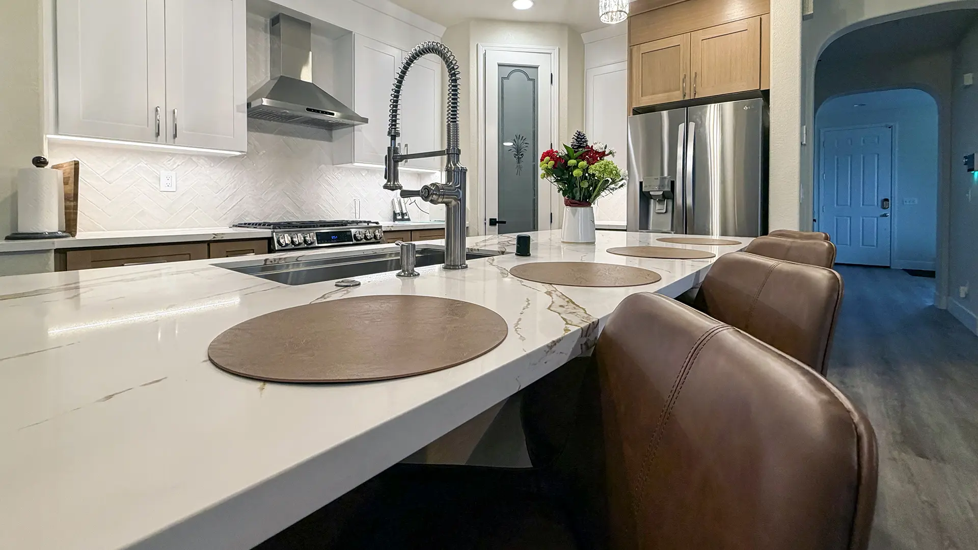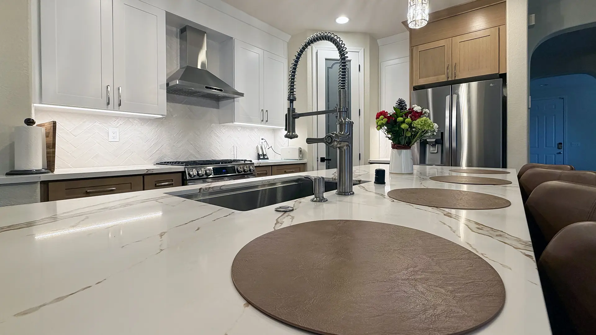 - Delivering modern kitchen designs with quartz countertops, under-cabinet lighting, and reconfigured islands