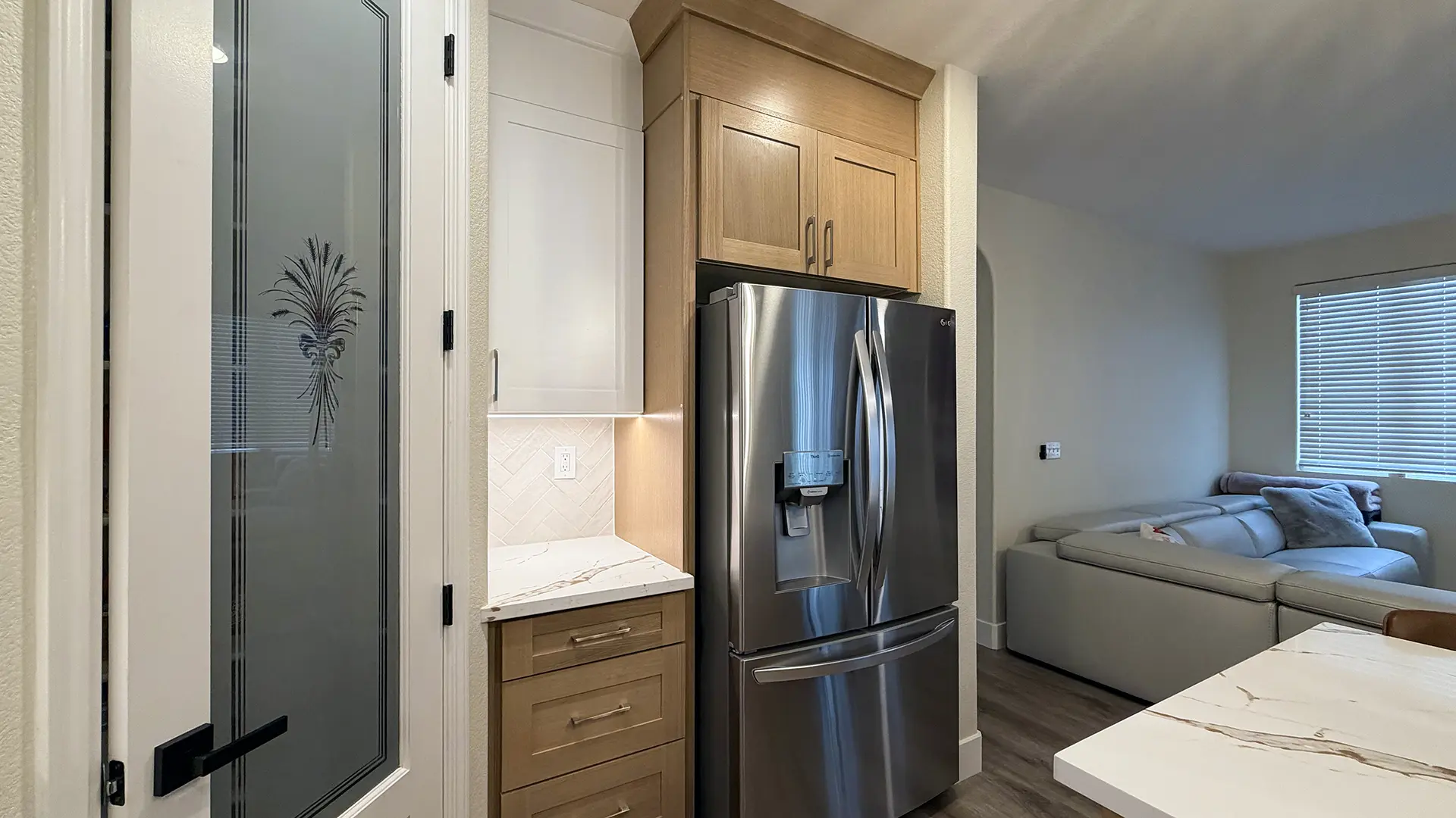 - Included adjacent cabinetry near the kitchen to create a cohesive, built-in feel