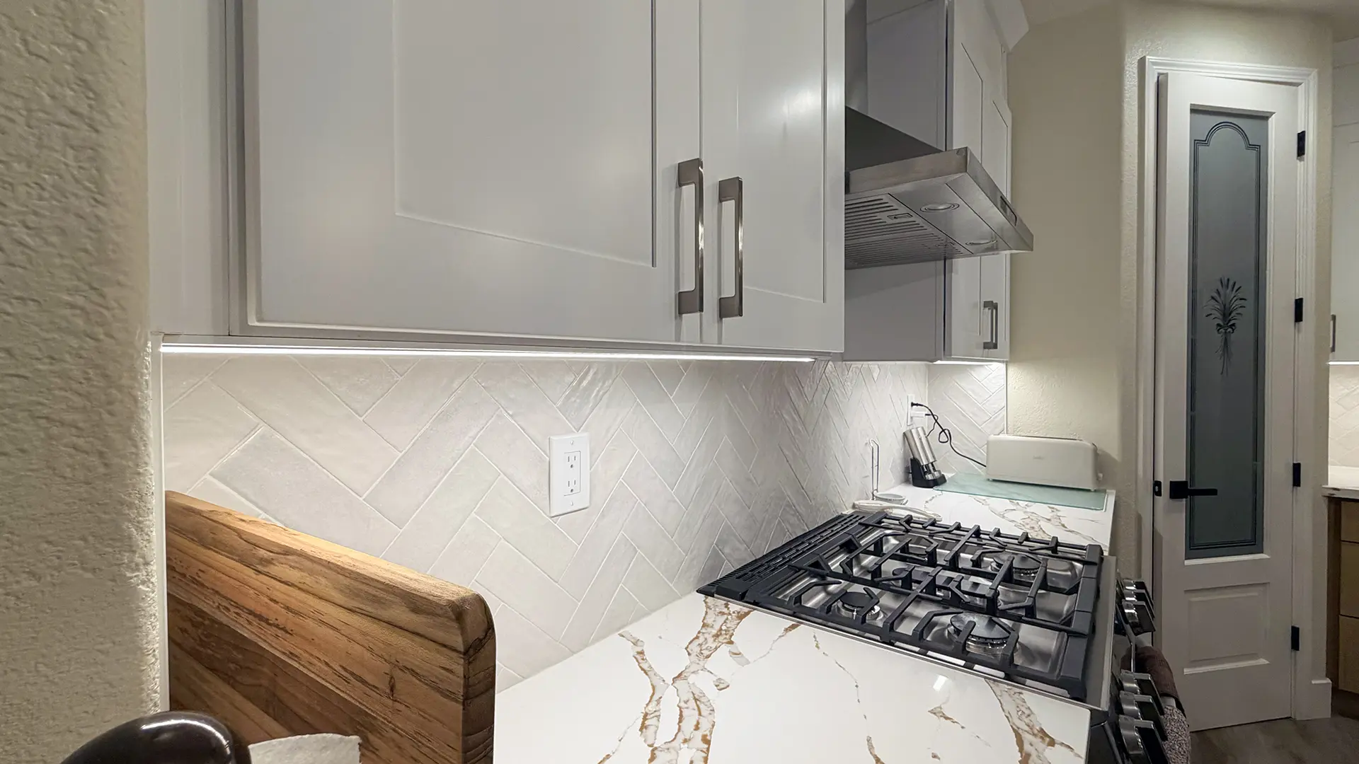 - Installed new under-cabinet LED lighting, including 2 fixtures at 32″ and 1 fixture at 24″